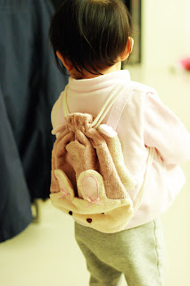 小芳(弟的老婆)元旦期間到日本自助旅遊外加批貨,從日本帶回來給Anita禮物是一個小背包,小背包的樣式很可愛,背包上還繡著Anita的英文名子,背起來真Cute,謝謝小芳送的禮物。