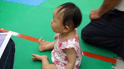Anita在爬之前讓她先熟悉環境,第一次看到這麼多小朋友,她有點不知所措,一直東張西望,什麼東西都感到好奇。