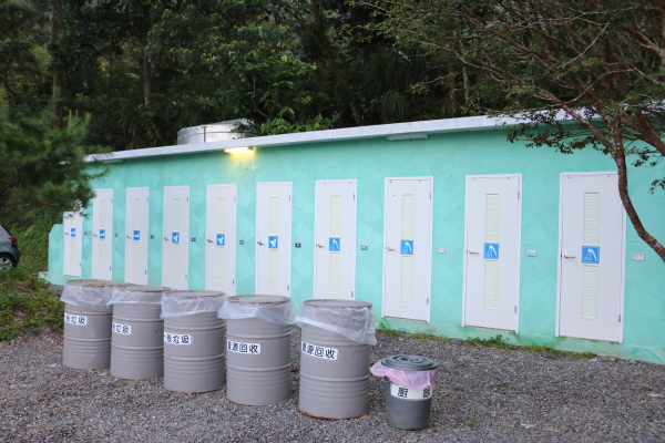 ▲ C2區的廁所及淋浴間,前方擺著垃圾桶分類