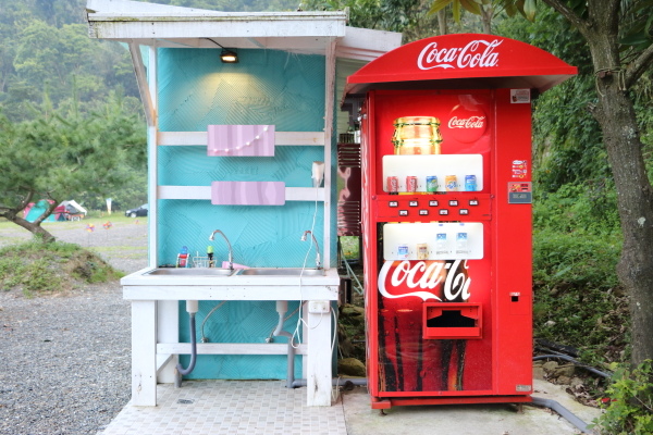 ▲ 淋浴間旁有洗手台,也有吹風機可以吹頭髮,如果想喝冰涼的飲料,也有販賣機