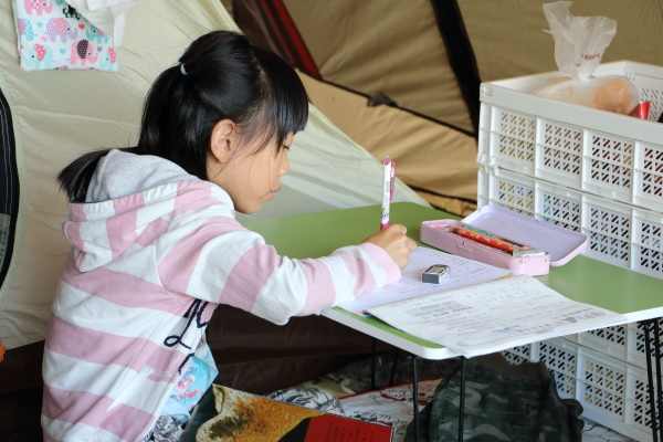 ▲ 我們星期五姐姐下課後就上山了,只好在營地裡寫功課