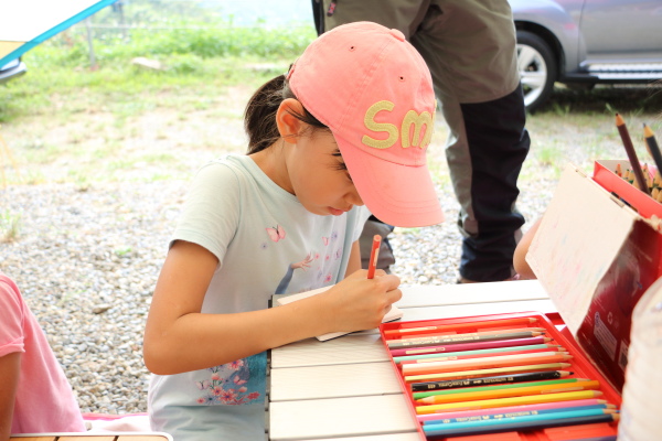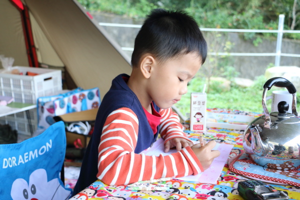 ▲ Taiwan露營準備了各式色筆讓小朋友著色,姐姐很認真的在畫