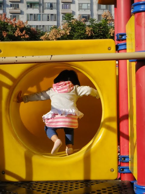 我現在真的覺得溜滑梯對小朋友來說真是個魔咒,不要說小踢了,連小兔這個才1.4歲大的都會狂喊"下去下去"說她要玩,更何況是anita^^~不過wan把鼻,我覺得應該是人多一點的時候帶她去跟小朋友互動會比較好,不只可以教她們如何保護自己以及尊重別人,更可以跟其他的大小朋友互動,這可是在家沒有的ㄛ^^