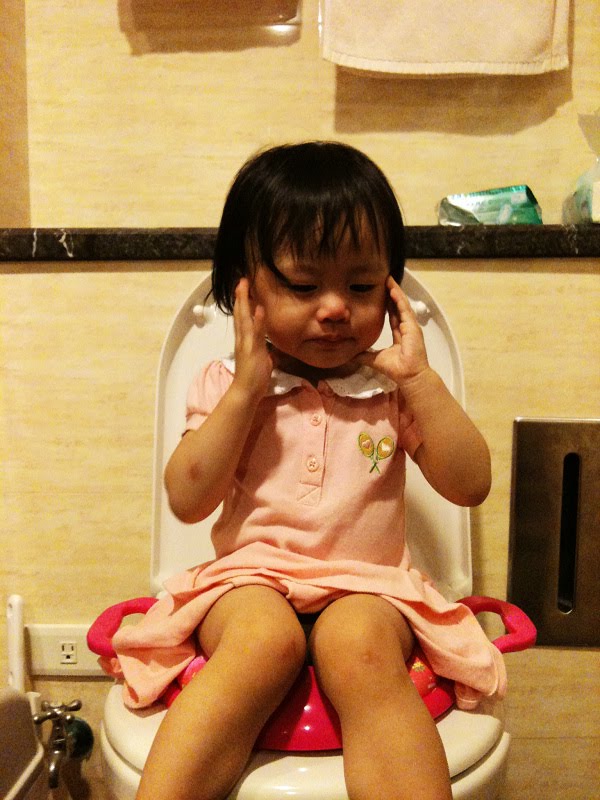 第一次使用的時候有成功,我跟Grace相當高興,想說她願意坐在這裡上廁所,試了好幾天,也都很順利,但最近她跟我們說便便的時候,都已經大在尿布上,也一直跟她道德勸說,有時候她有要便便的姿勢,我看到馬上抱起她去找馬桶寶寶,發現好像有點抗拒,坐在馬桶上一直不願意大出來,坐了大約30分鐘,發現沒有大出來又包上尿布,結果不一會兒,就聞到臭臭了,直接在尿布上大出來。