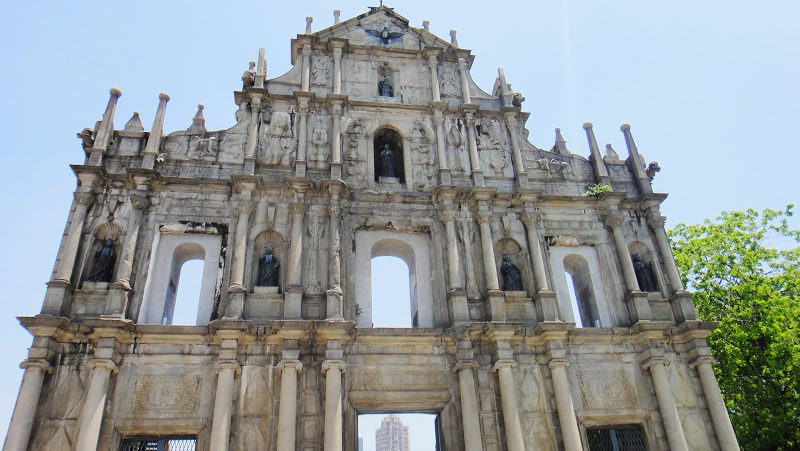 澳門地標大三巴牌坊是旅客必到之地。自從1835年一場大火,原為中西合璧的聖保祿教堂,變成了只有前壁的遺址。聖保祿教堂是當時東方最大的天主教堂,號稱「東方梵蒂岡」,附屬於聖保祿學院。學院是遠東地區第一所西式大學,從1594年成立至1762年結束期間,不少訪華的外國傳教士來修讀中文,令學院成為這些傳教士進入中國的重要傳教基地,對推動歐洲和中國的宗教及文化交流起到無可比擬的卓越作用。