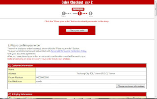 10.我已有登錄會員的畫面為主,結帳第二個步驟再次確認您的資料,包含在樂天註冊時所填的姓名、地址等資訊,如果沒問題,直接按Place your order按鈕。