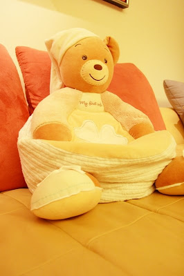 逛著逛著,來到Kaloo專櫃,為何要到這個專櫃呢,因為之前在毛利家看到Joanne專屬的沙發,真是可愛,也在中友百貨找過,不過賣完了,只剩下兔子的造型,我跟grace並不喜歡兔子的造型,於是我們就沒買,這次在新光,想說碰碰運氣,沒有想到,居然讓我看到了,於是grace二話不說,就請專櫃小姐包起來,於是我們就帶回這張沙發了。