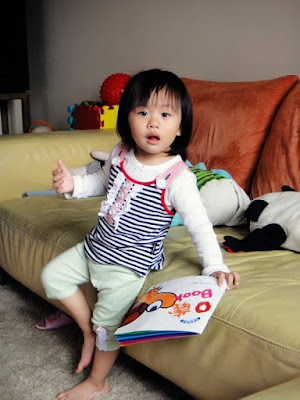 最近新聞報導小朋友愛吃肉,不愛青菜。但偏偏Anita這個小妮子和別人相反,她超愛吃青菜,連帶她到超市時,看到隨手可得的高麗菜,她都會很認真的抱著不放,好幾次都不小心溜了手掉在地板上,搞得店員面有難色的說沒關係,再放回去就好了="=。也常常讓媽咪不顧形象的在超市對Anita大聲喊叫。